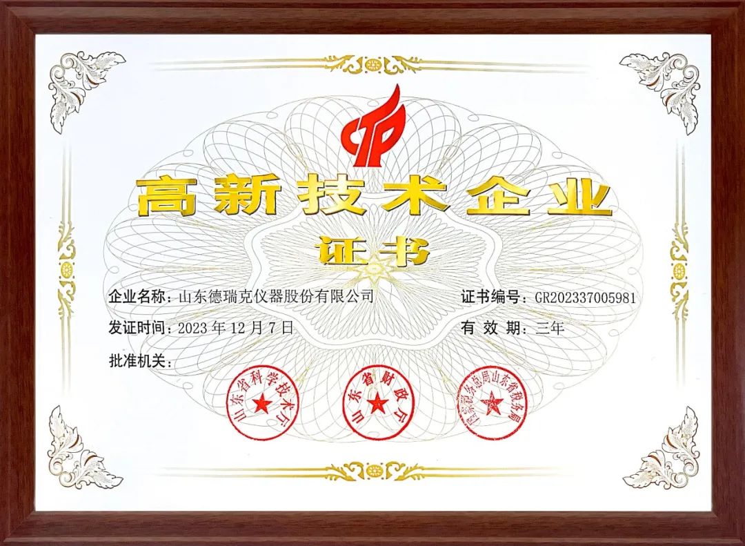 高新技術(shù)企業(yè)由科技部、財(cái)政部、國家稅務(wù)總局三大部委共同認(rèn)定,山東德瑞克儀器股份有限公司再次榮獲“高新技術(shù)企業(yè)”證書,這是政府部委對企業(yè)自主知識(shí)產(chǎn)權(quán)、研發(fā)投入、創(chuàng)新能力、成果轉(zhuǎn)化能力、組織管理水平、發(fā)展?jié)摿褪袌銮熬暗确矫娴囊环N認(rèn)可,是國家對企業(yè)綜合科技實(shí)力的quan威認(rèn)證,更是對我司未來發(fā)展的鼓勵(lì)和鞭策。